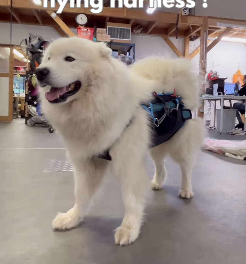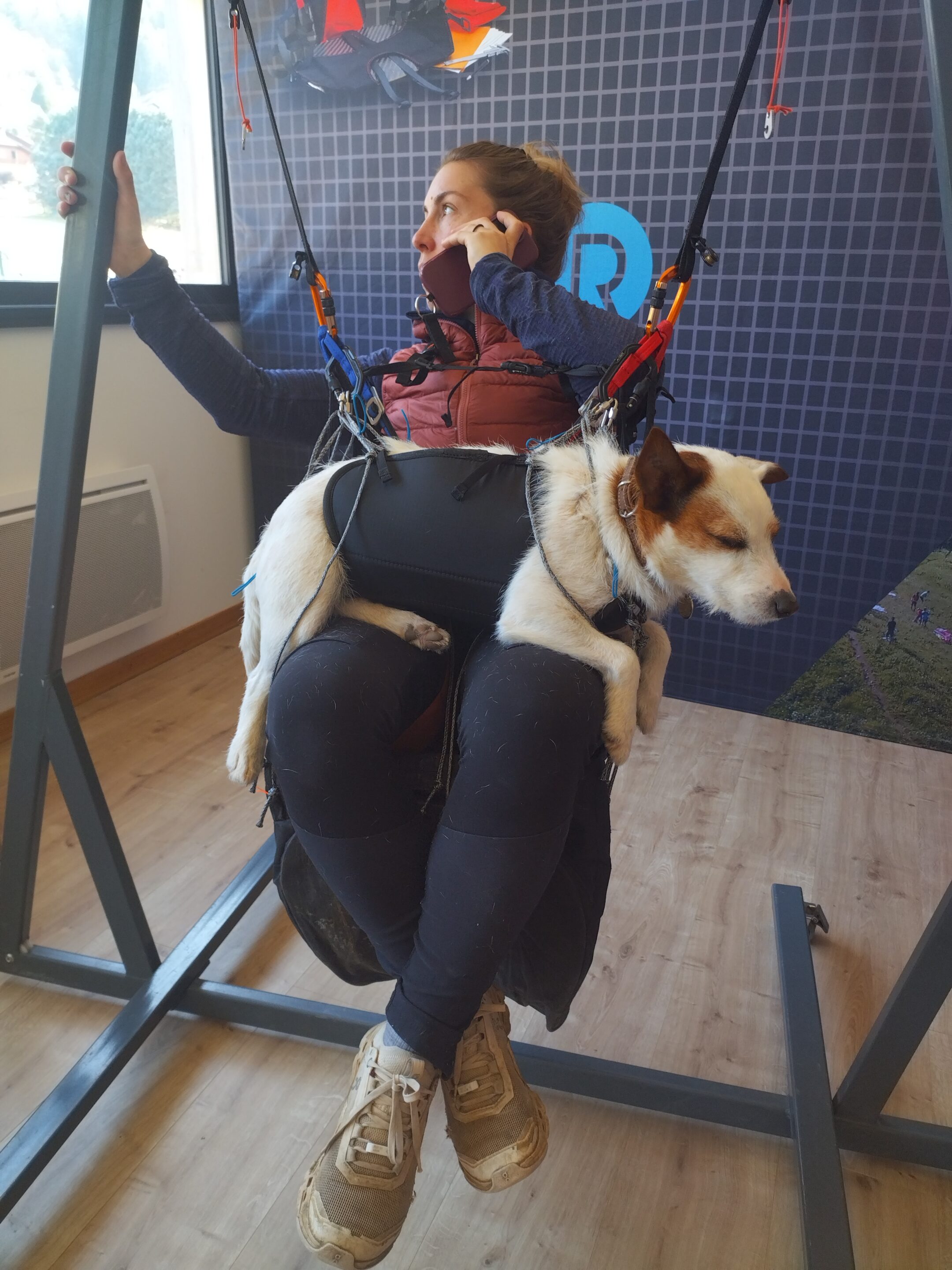 – Un harnais pour les petits chiens La "Laïka" permettant de le porter au décollage, avec possibilité de réglage de la hauteur.